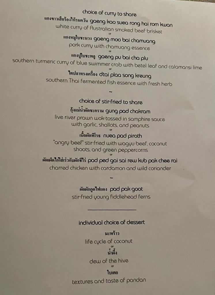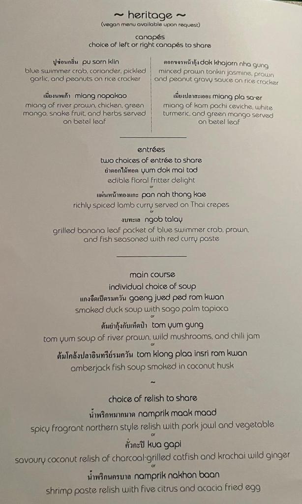 I had the great privilege of eating a very special meal at “Nahm”, the restaurant founded by Australian Thai chef extraordinaire, David Thompson. David has since moved on to a less refined, Thai street food-focused restaurant, but Nahm is still amazing.