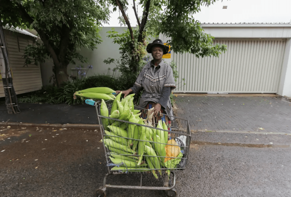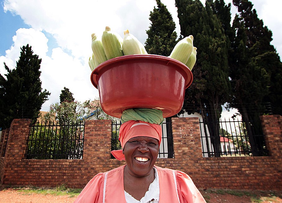 A ubiquitous scene (and sound) in Johannesburg is that of the mielie (ears of corn)ladies, plying their wares from street to street, sometimes carried in baskets and bags on their heads, and sometimes in shopping trolleys. And all the while they cry, “Green mielies! Sweet green mielies!” This is the sound of my childhood, and my (now) adulthood. These women inspire awe through their sheer dedication to earning a basic living, often for decades on end in a particular suburb.