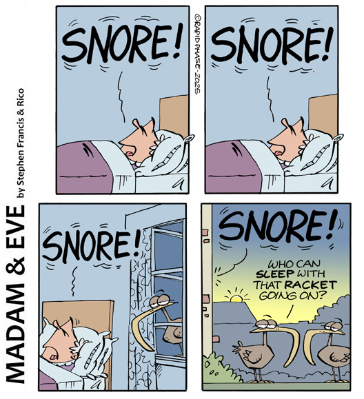 And I love Stephen Francis and Rico Schacherl’s “Madam and Eve”, whose gogo (grandmother) definitely has a hate/hate relationship with our feathered friend!