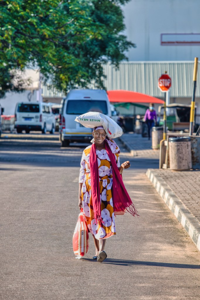 Wherever you go in South Africa – from big cities to the country, you’ll see women carrying loads on their heads. Little girls learn this skill from the tie they take their first steps, and old women carry things in this way until the end of their lives. The grace and poise with which they do this, is one of the things I love about this place.